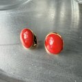 PM50-【 Monet 】モネ・ヴィンテージピアス 1980s Gold Tone Red Enamel Paint Oval