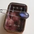 25mm×18mmの大粒の紫色のドラゴンズブレス(タンザナイトオパール)のカボションストーンをシンプルなストールピンにしました。