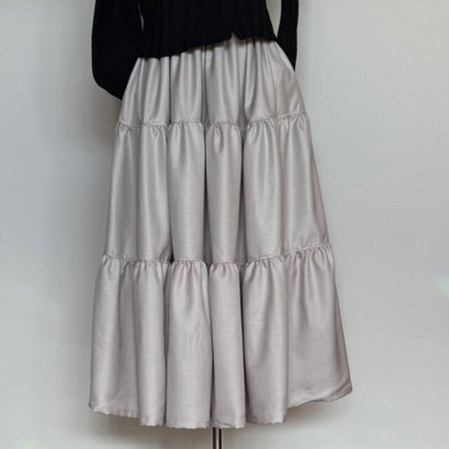 上品な光沢と裏地付きのキレイめティアードスカート。