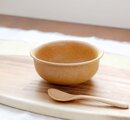 リムのついた幅広の丸い鉢の形に成形後、土物らしさを感じさせてくれる山吹色の結晶釉をかけて焼き上げました。