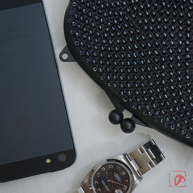 編みがま口×ビーズがま口のハイブリットつぶつぶビーズがま口です。