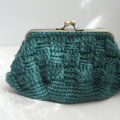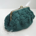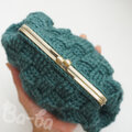 ふんわりと暖かい毛糸を格子模様に編み上げ、がま口に仕上げました。
