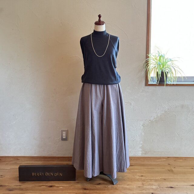作品無事に到着しました。 相変わらずの選んで間違いなしの素敵な作品でした^^ 10年前はじめて出会った時も思いましたが、シンプルな縫製、ウエストゴムでフリーサイズでこのシルエットは魔法のようです。10年前の作品ですが、さらに心地良くなり今年も活躍しています。今回の作品もずっと寄り添ってくれると思います。ていねいなお取引、やさしいメッセージとお心遣い、ありがとうございました。