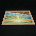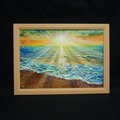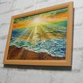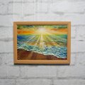 「潮風のまどろむ浜辺で」は、優しい朝焼け光に包まれる静かな海辺を描いた特別な油絵作品です。柔らかい日差しが水面を美しくきらめかせ、心地よい波の音が子守歌のように響く中、静かに目覚める砂浜の幸福を感じられる瞬間を切り取っています。この作品は、海や太陽の光が好きな方に特におすすめです。
