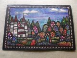 拭き染めとはベースになる色で一度染めた後、刻印の輪郭をテルテル坊主のような筆で適度にぼかす技法です。そうすることのより、アンティーク風になり暖かい印象を与えています。