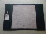 タンローに刻印を配列し、拭き染めという技法で自家染色しました。