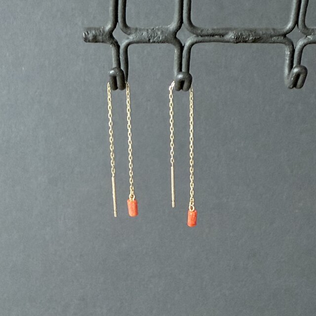 小さな円柱型珊瑚のチェーンピアス。