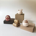 ピンクベージュに焼き上がる土をベースに、白くてミルキーな干支様となりました。