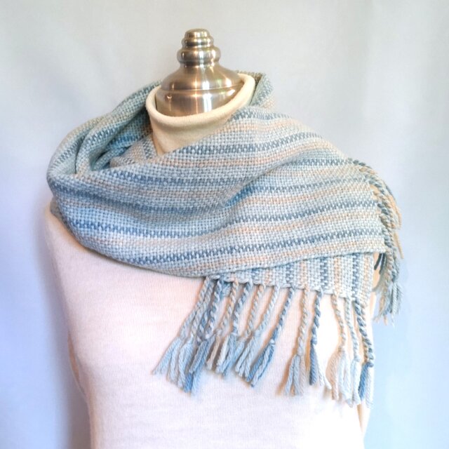 草木染毛糸の手織りマフラー M-119購入する時は少し短いかも?と思っていましたが、実際に巻いてみると丁度良い長さで軽く、使いやすいです! 色もイメージ通りで暖かいです。