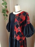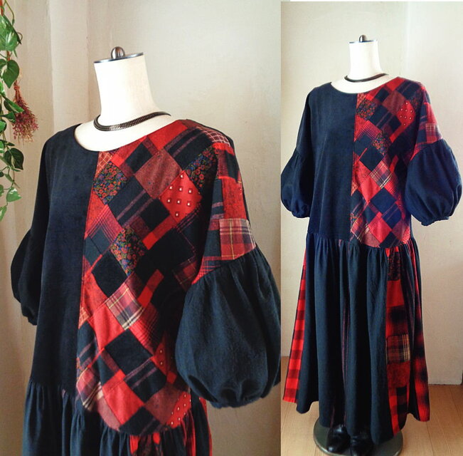 印象的で大人可愛い、一点ものの絵画なパッチワークワンピースです。