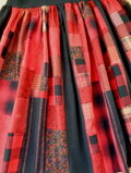 深い赤色系ギャザーマキシとっても素敵。赤系マルチカラーティアードマキシと見比べどっちもも可愛い~可愛い~と連呼、うっとりしています。お作りがとても丁寧で美しく、パーツ生地の並びも最も濃い色(黒地に花柄等)が良い間隔で分散配置されていて素晴らしい。平太ゴムの具合もちょうど良い自然な乗っかり感。年配者なのですがおすすめの作品です。迷われている方はぜひご注文を、と思います。 ありがとうございました!