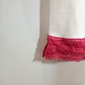 身頃、リブをあえて微配色の色合いで裾のレースにアクセントをもたせた配色にしました。