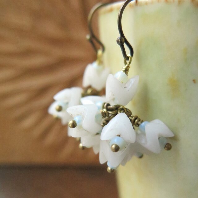アンティーク スネークビーズ 白 小房 ピアス&イヤリング 百世 momotose(西)