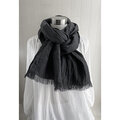 秋冬 東炊きリネンのストール ギンガムチェック 黒×グレー