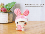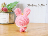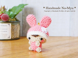 【受注制作】あみぐるみ★白縁☆うさ耳帽子のベビーちゃん・ピンク/約5cm・ボールチェーン