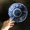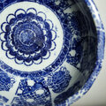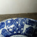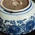 【金継ぎ用に】見込みに花文様◆伊万里 印判六寸鉢 骨董/antiques 碗 明治期【ニュー・削げ有り】