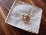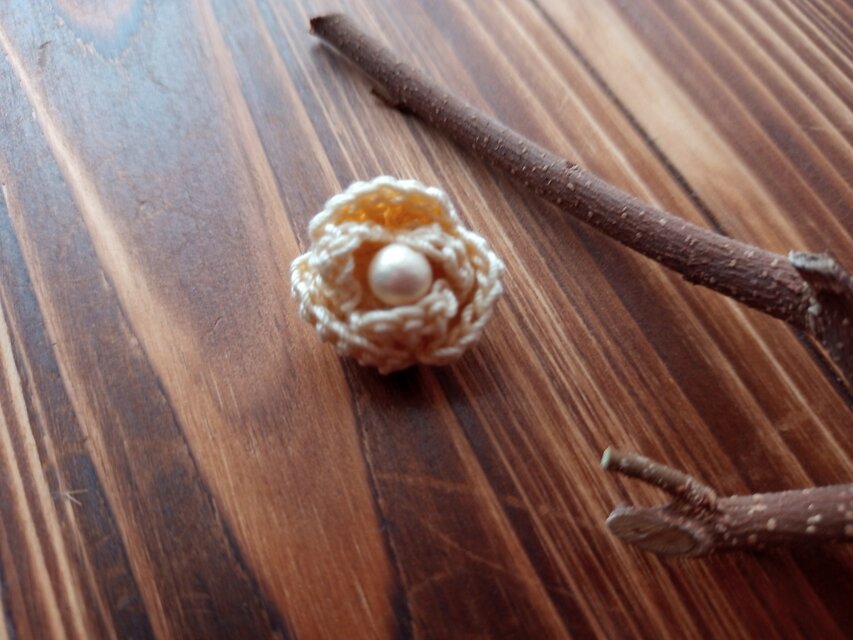 六枚の小さな花びらがコットンパールを包むように咲いたブローチです。
