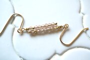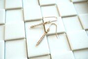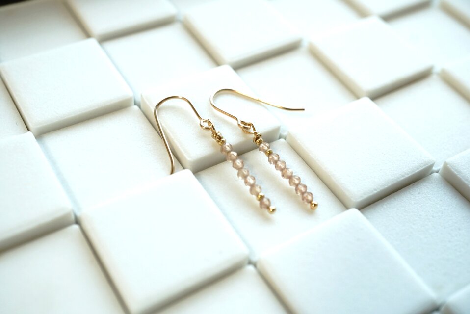 美しい天然ジルコン(2ミリ)を7粒、ゴールドのピンに通して作ったスティック型のゆらゆらピアスです。