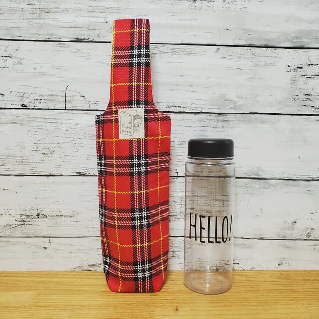 赤のタータンチェック柄でお作りしたペットボトルケースです。