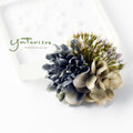 シックなくすみブルーのアスターと、グラデーションがやさしいくすみベージュ紫陽花の2WAYコサージュ。