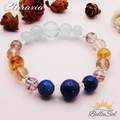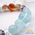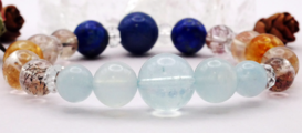 黄金色のブランデーシトリンから、メインストーンのアクアマリンとブルークォーツへの流れで、視線と意識にメリハリが生れます。