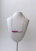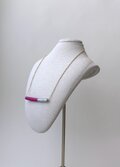 このネックレスは紫がかったピンクとシルバーの2色を使い華やかな1点に仕上げました。色は鮮やかですが、真っすぐな枝でシンプルなデザインなので普段使いしやすくなっています。