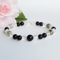天然石*モリオン×ムーンストーン×ラブラドライト*水晶*ブレスレット*お守り*細め*おしゃれ*天然石ブレスレット