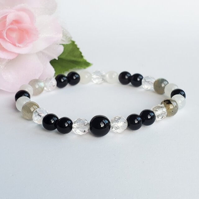 モリオンが不要なエネルギーを遠ざけラブラドライトとムーンストーンが心を落ち着かせながら感性や直感力を高めてくれます。