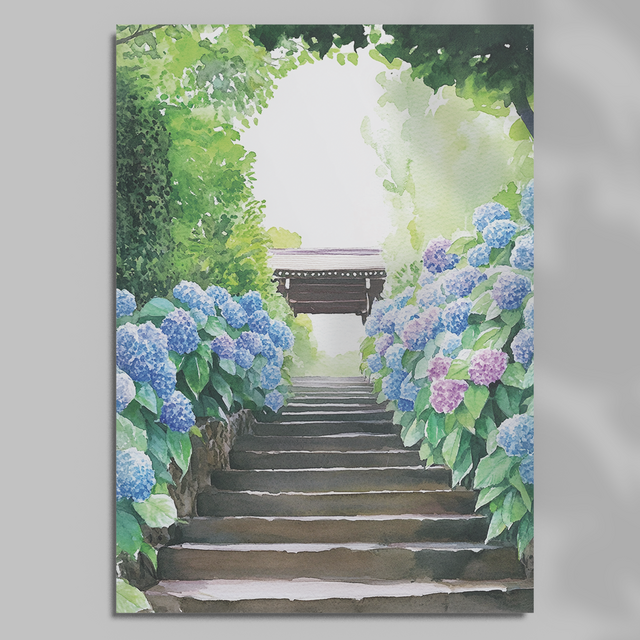 「癒しの旅」コレクション全21作品のひとつ、神奈川県の明月院の風景を描いたオリジナルイラストのポストカードです。