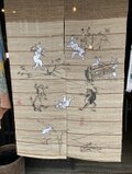鳥獣戯画の一場面を顔料で丹念に描き上げ、味わい深いのれんに仕上げました。