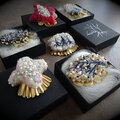 作品が届きました。 今回は自分へのプレゼントとして購入した「蝶」のブローチでした。 実際に手元で拝見すると、羊毛画の多彩で繊細な色使いが素晴らしいです。 アンティークビーズの控えめな輝きも美しい、唯一無二のブローチと出会えてとても嬉しいです。 この度は素敵な作品をありがとうございました。