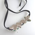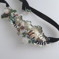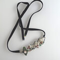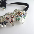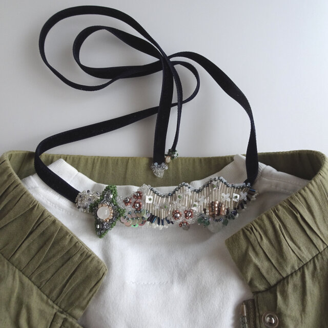 ビーズを立体的に刺繍したベロアリボンネックレス。