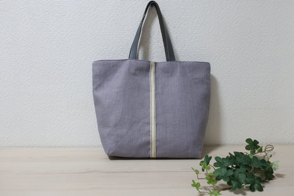 表地は、シックで落ち着いた無地リネン中央に、コットンテープをつけてみました。