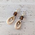 べっこう色のチューブ型アクリルと、クリーム色のしずく型アクリルが織りなす柔らかなフォルム。内側には、2種類のチェコビーズがさりげなく輝きます。