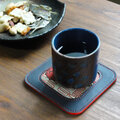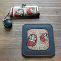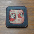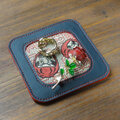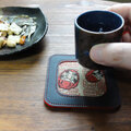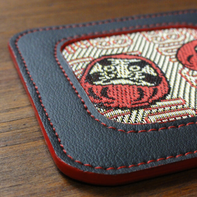 だるま柄の畳縁と合成皮革を使用したコースターです。