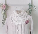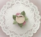 バラのお花は生き生きと自然に見えるように、ひとつひとつ加減しながら編んでいます。蕾と小さなお花は淡いアンティークモーヴピンクの刺繡糸で編んでおります。