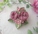 アンティークモーヴピンクの刺繡糸で編んだ、小さな薔薇のブローチです。