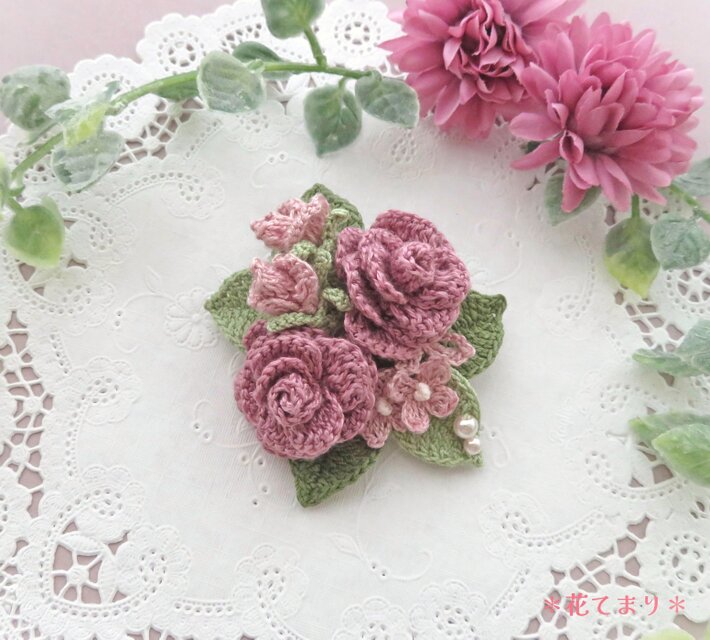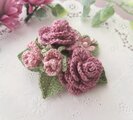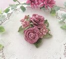 レース編み 小さな薔薇のブローチ~antique mauve~