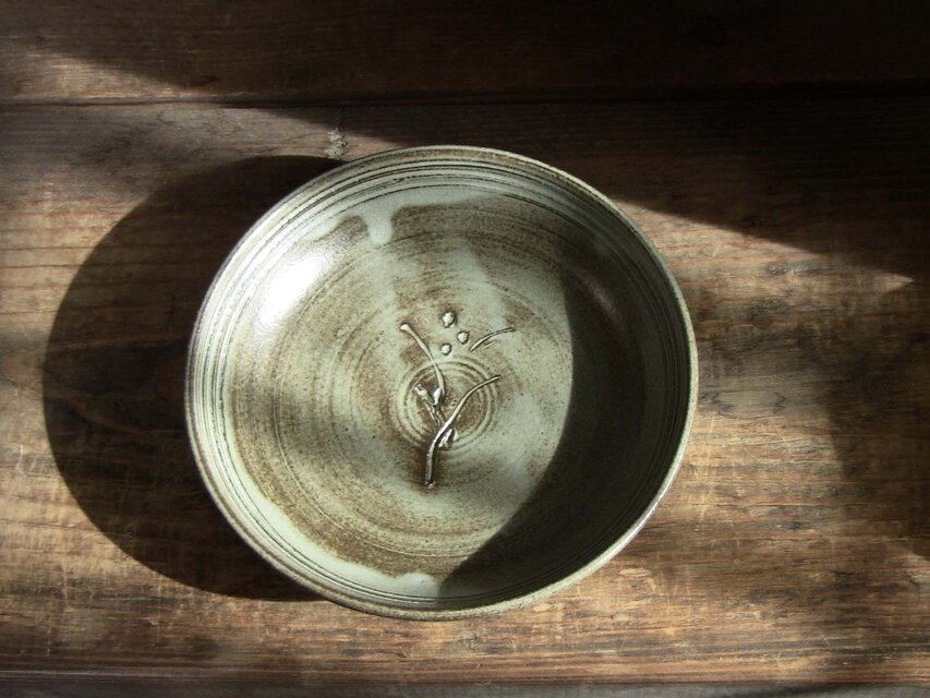 ●素地に2本線(溝)を施してから皿の真ん中に野花を描きます。