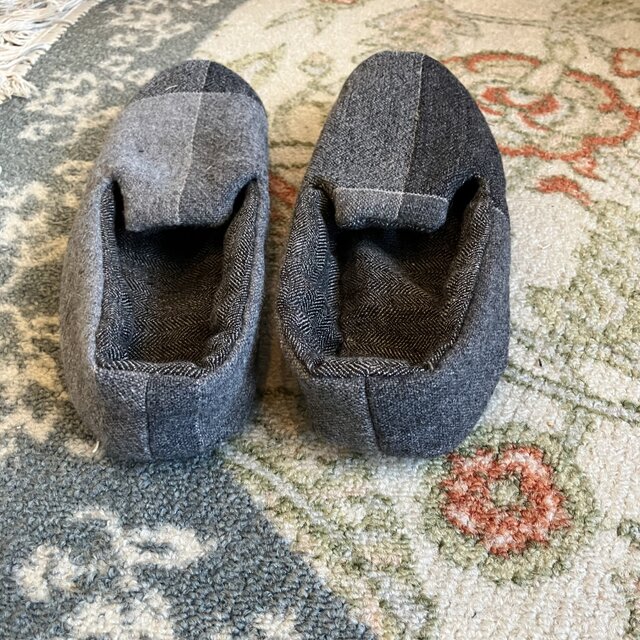 こちらはウールチェック模様で作ったルームシューズのご紹介です。