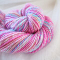 迅速でとてもご丁寧な対応をいただいてありがとうございました。写真で見て一目で気に入って購入しました。昨日毛糸を受け取ったあと、優しくて淡い桜色がとても素敵で、しばらく眺めていました。2度惚れです。(笑)アラン模様のストールを編む予定ですが、模様をハッキリ出してくれそうな、編みやすそうな毛糸で嬉しいです。素敵な作品とのご縁に感謝しています。今後ともよろしくお願いします。