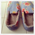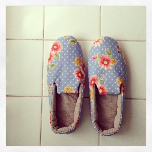 大切にしまっておいたふんわり花模様の生地で作ったルームシューズのご紹介です。