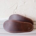 革質はしっとりとしたオイルドレザーで、触れると吸いつくような柔らかさ。履くほどに足に馴染み、シワや艶の変化を楽しめる素材です。白いステッチがレザーの鮮やかさを引き立て、底のブラウンレザーとの組み合わせも絶妙。