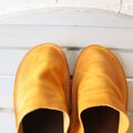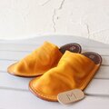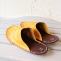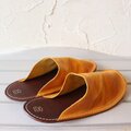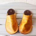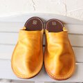 このスリッパは、見た瞬間に気分が明るくなるようなハニーキャメルのレザーが魅力です。