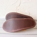 白いステッチが爽やかなアクセントになり、カジュアルさの中に上質さを感じさせる一足。お部屋の空気までふんわりと温かくしてくれるような、優しい存在感の革スリッパです。