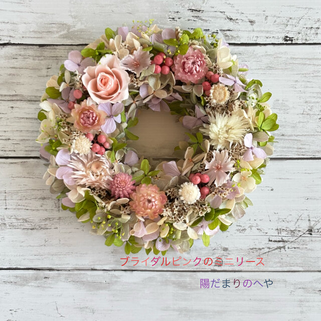 花材・・・バラ、シルバーデージー、タタリカ、ペッパーベリー、アジサイ、カスミソウ、マルガリータ (プリザーブドフラワー)