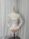 エレガント ボレロ ロングスリーブ ハイネック リーフ刺繍 ファスナー 結婚式/披露宴