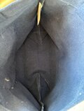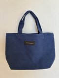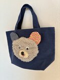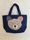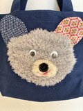 紺色のウォッシュキャンバストートバッグに、ふわふわのくまの作品を縫い付けました。