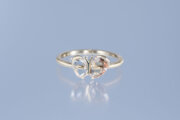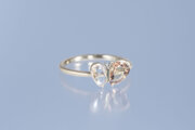 淡いオレンジのサファイアと、少しイエローを帯びたカラーレスサファイアを、ちょうちょの羽に見立てました。