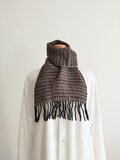 首元でコンパクトに収めるのに向いているサイズ感で、作家自身もネックウォーマー的な感覚でよく巻いています。